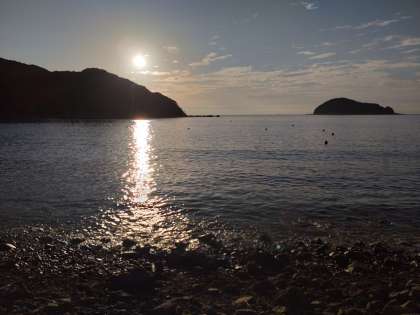 日高少年自然の家から西の方角を見ると、太陽が沈みつつあるのがわかります。
