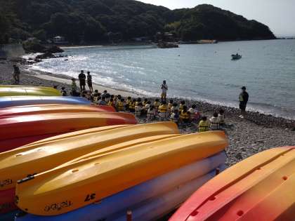 1年生は2つのグループに分かれ、カヌーとカヤックを前半後半で入れ代わって体験します。