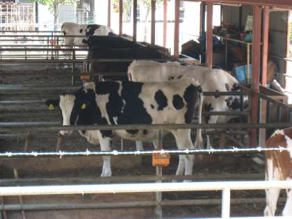 府立農芸高校には3つの学科があります。ハイテク農芸・食品加工・資源動物です。資源動物では牛などいろいろな動物を飼育していますので、土曜日・日曜日も飼育担当の生徒が登校して動物の世話をしています。この時も生徒が牛の世話をしていました。ご覧の風景は子どもの頃から今もこの地域に住んでいる自分にとっての原風景といえます。長閑な環境の中で、米や麦、花や果樹の栽培、チーズやバターを作ったり、牛やニワトリなどの飼育を学ぶというのも、英語や数学などの教科の勉強とはまた違った楽しみがあるはずです。もちろん教科の勉強もしますが。