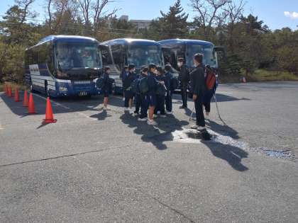 このあとクラスごとに、おみやげ購入、砂絵作成、砂の美術館見学、に移っていきます。
