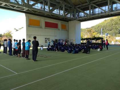 ここは町(湯梨浜町)の運動施設が集まっているところで、ドラゴンカヌーもここで体験します。