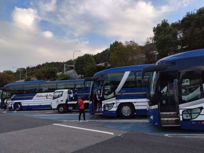予定通り西宮名塩サービスエリアでトイレ休憩です。ここまでは特に渋滞等なくこれましたが、ここから先、少し渋滞しているようです。