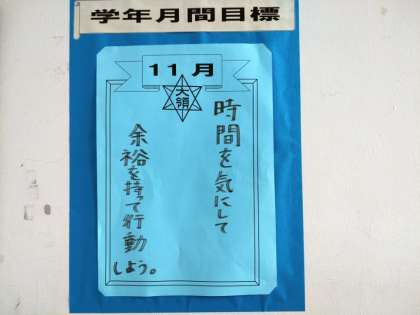 今月11月の目標は「時間を気にして、余裕を持って行動しよう」です。