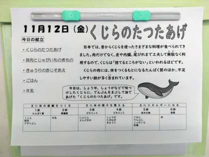 昔の学校給食によく出ていたというくじらのたつたあげが今日のメニューにありました。