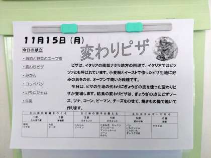 本日(11月15日)の献立