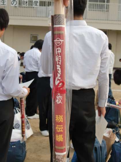 琴平中野うどん道場から麺棒とうどんの秘伝書をおみやげにいただきました。