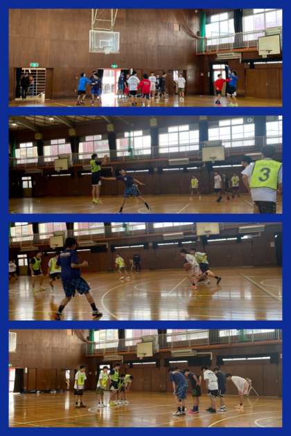 久々に3年生とプレーができて、1、2年生たちもとても嬉しそうです。練習したあとは、3年生チーム対現役で試合を行いました。