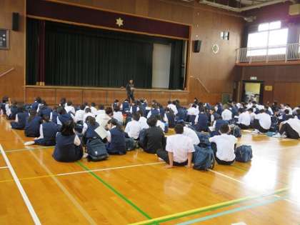 一泊移住・校外学習の様子は、随時ホームページでお伝えしたいと思います。よろしくお願いします。下の写真は、今日の午前中、体育館での1年生一泊移住の事前指導の様子です。みんなしっかりと注意を聞いていました。明日の天候は晴れの予報です。ケガのない活動をお願いします。