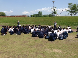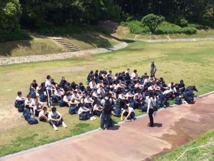 今城塚古墳公園に到着した時の様子です。みんな元気です。