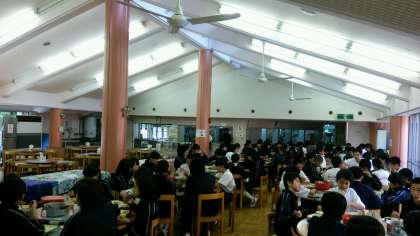 朝食の様子です。みんな元気に2日目を迎えたようです。今日も快晴のもとしっかりと活動してもらいたいです。
