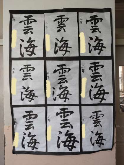 2年生が主に1月に取り組んだ書写の作品が教室前に掲示されています。