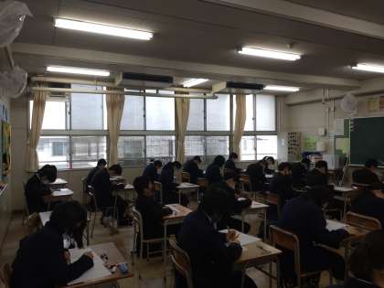1・2年学年末テストもいよいよ最終日。今日は数学、保健体育、美術のテストが行われます。