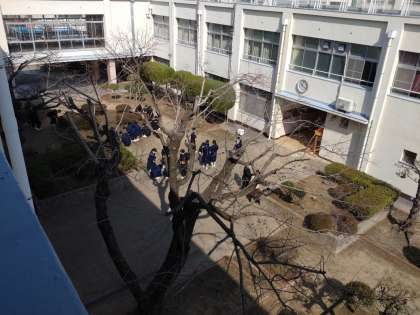 校内をまわっていますと、中庭で1年生が作業をしていました。