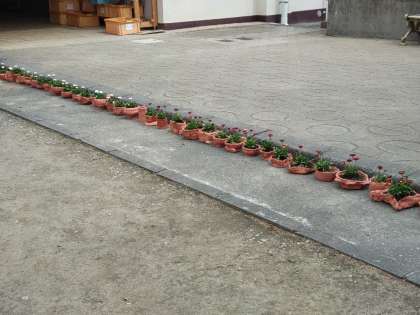 何をしているのか、よく見てみますと、自分たちで作成した焼き物の植木鉢に花を植えていました。