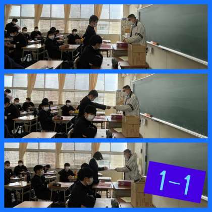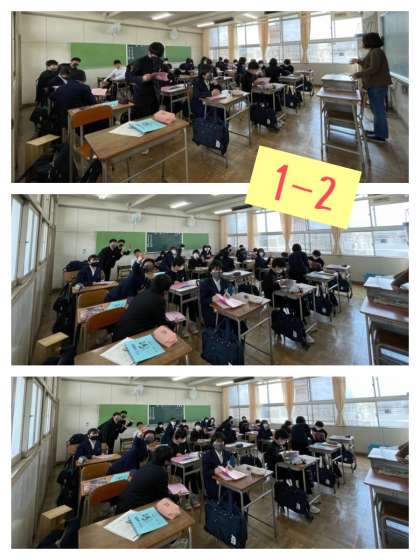 通知表を担任の先生からもらい、ワイワイと賑わっています。