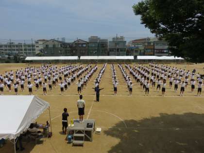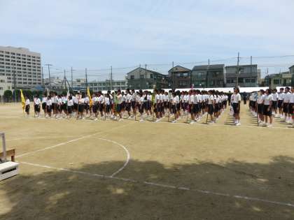 国旗・校旗の掲揚に注目しています。その後の体操もしっかりとできていました。