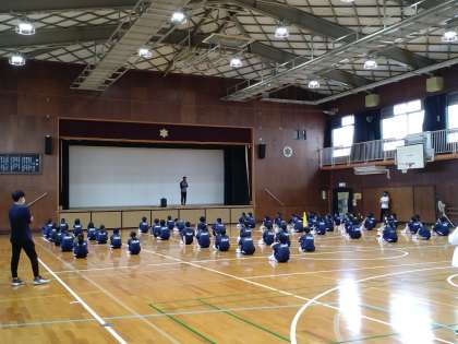 体育大会の全体練習は中止となりましたが、1年生は体育館で学年だけの練習を行っています。