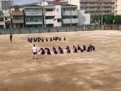 今日の6時間目、1年生は体育大会に向けた学年練習を行いました。