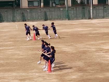 学年種目の入退場の練習を中心に行い、後半は学年種目を実際に行いました。
