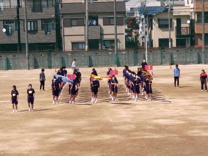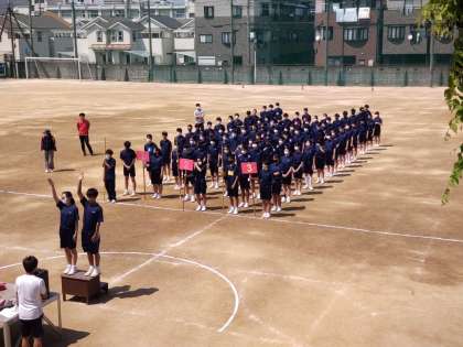 5限目の3年生、6限目の2年生の、それぞれ学年練習では、開会式・閉会式の練習を行いました。特に開会式、閉会式での生徒会、各学級の位置はどこなのか、などを重点的に確認していました。
