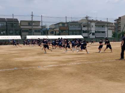 学年種目も同様に予行練習を行っています。画像は2年学年種目の様子ですが、もはや本番か、と思うくらい本気モードです。