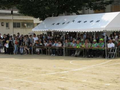 今年の体育大会は雨の都合で開会式を2時間遅らせて実施しました。しかし、来賓、地域、保護者の皆様は例年以上に多数お見えいただきました。大変にありがたく感謝しております。ご声援ありがとうございました。