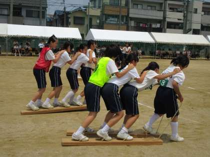 各学年で行われたムカデ競争の様子です。やはり息を合わせてということはなかなか難しいようでした。