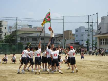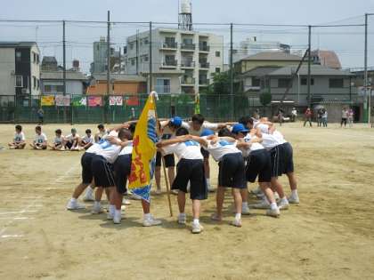 騎馬戦の前に各クラスごとにとても気合いが入っていました。