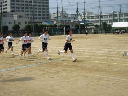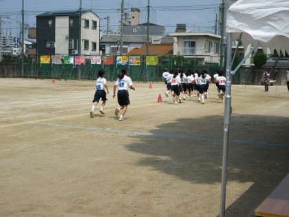 午後の部の初めに女子1000メートル走が行われました。どの学年の女子もしっかり走っていました。