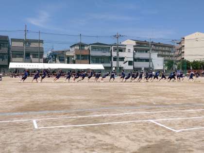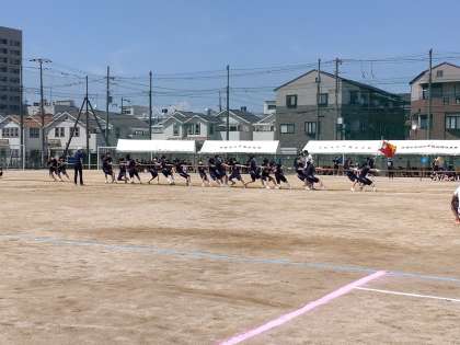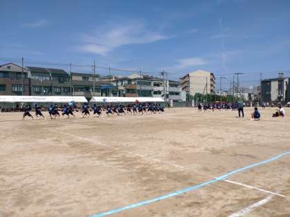 学年別、クラス別で競技を行います。みんな心ひとつにがんばります。