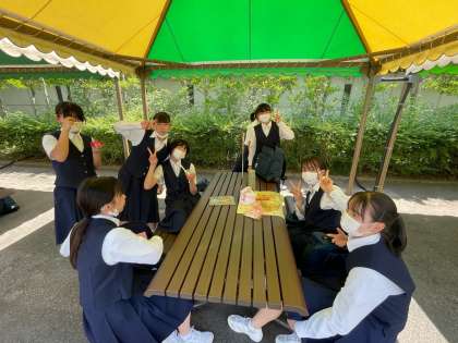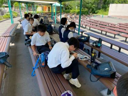 あるポイントに到着した班は、そのポイントに入場し、お弁当を食べています。