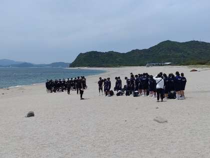 淡路青少年交流の家のすぐ下には美しい砂浜が広がり、海の向こうには四国の山々も見渡せます。