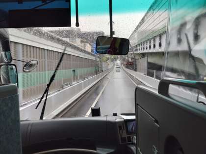 渋滞の影響でなかなか到着できませんでしたが、ようやく玉出出口です。ここから高速道路を出て、出発したところ(昨日バスに乗ったところ)に向かいます。