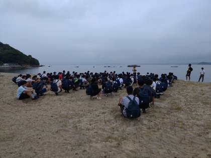 各クラスまず浜に集合し、このあとの指示を受けています。
