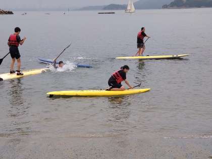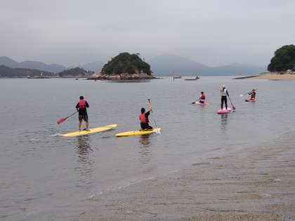 ボードの上に立って(もしくは座って)パドリングする、最近川や海で見られるスポーツも体験していなす。