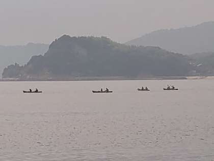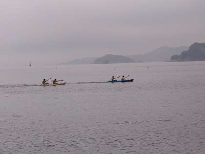 浜から漕ぎ出すとスピードをあげてどんどん進んでいってます。