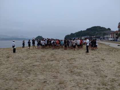 3種目めは海産物リレーです。第1走者がバケツに入っている海産物を1つ選び、それをバトンにリレーしていきます。クラス全員リレーです。