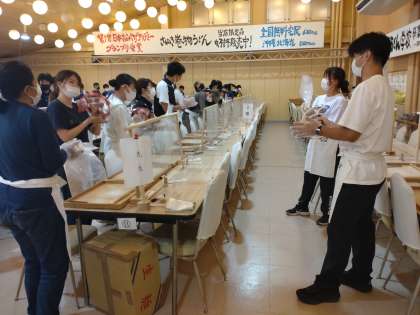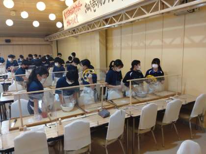 手こねのあとはビニル袋の中に入れ、おにぎり状にします。