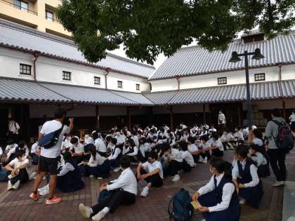 これより班ごとに分かれてこんぴらさんに登ります。