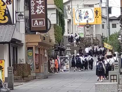 各班1分おきに出発しています。 階段をがんばって登っていってます。