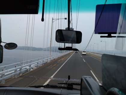 現在、3年生を乗せたバスは大鳴門橋を渡っています。