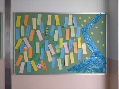 本校でも掲示板など各所で七夕にちなみ、生徒が短冊にそれぞれ願いを書いて掲示しています。