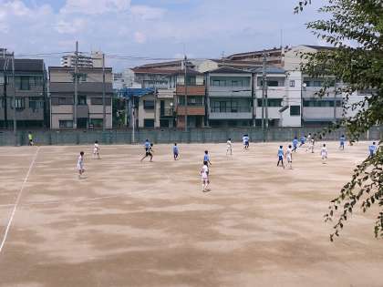 午後のグラウンドではサッカー部が活動しています。