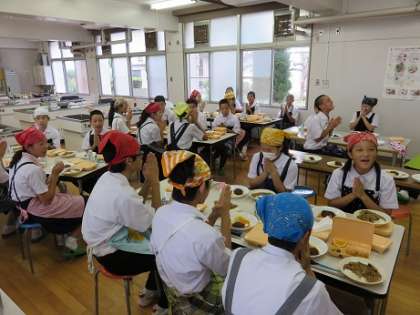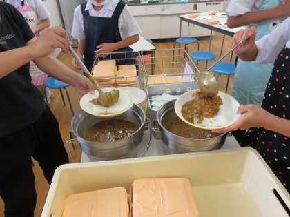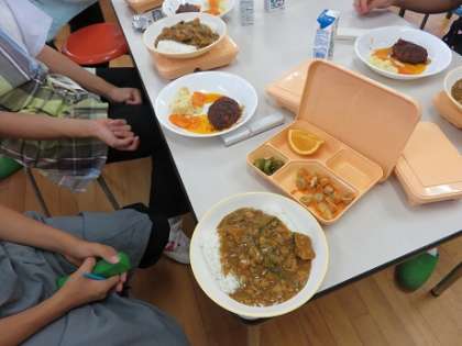 出来上がってから、給食と一緒にいただきました。今日の給食はカレーです。カレーとハンバーグで生徒たちはとても満足そうでした。ご苦労様でした。