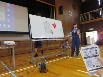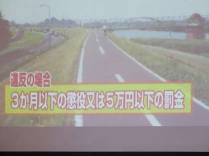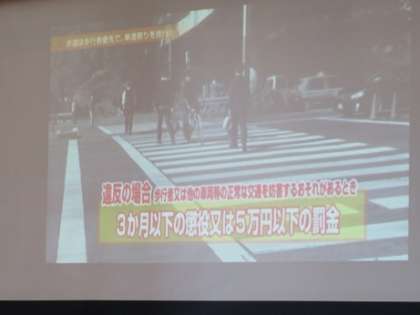自転車の運転で違反行為の例や違反を犯した場合の罰則についてもビデオも見ながら細かく説明いただきました。