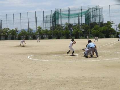 本日昼前より野球部は茨木市の東雲運動広場グランドで大阪市立十三中学校と大阪中学校軟式野球大会の初戦を戦いました。後でアップします得点掲示板をみていただいたら試合の推移は明らかですが、両チーム無得点のまま7回を終了しました。試合は終始十三中学校が優勢でしたが、そこは顧問の先生に鍛え抜かれた大領中学校の野球部員が、相手チームの得点を7回まで許さず、対ブレークの末に自校に勝利を呼び込みました。最後まで頑張り抜く根性が勝因ではないかと思います。多くの保護者の皆様も応援に駆け付けてくださいました。そして、勝利の後の素晴らしい笑顔が印象的でした。今後もご支援よろしくお願いします。