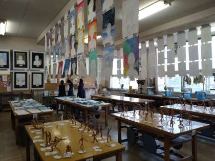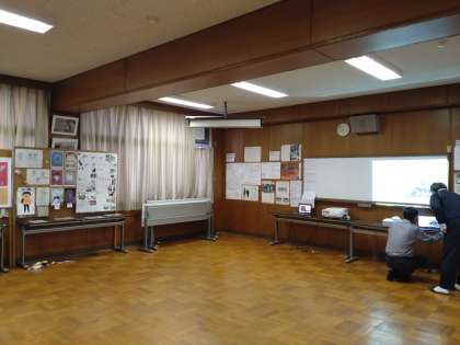 2階会議室では、2年平和学習の取組やサポートルームの取組、生徒会の取組が展示されています。