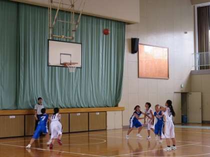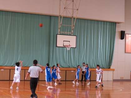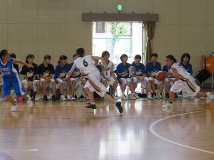 終始気合いの入ったプレーで相手を圧倒し結果は71対45の圧勝でした。よく頑張りました。