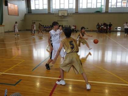 身長の差で圧倒的に有利な相手に対して冷静に、素早い動きでパスを回してシュートを決める選手の動きは見事でした。監督・コーチと選手が一体となって勝利に向かう姿勢が素晴らしかったです。
