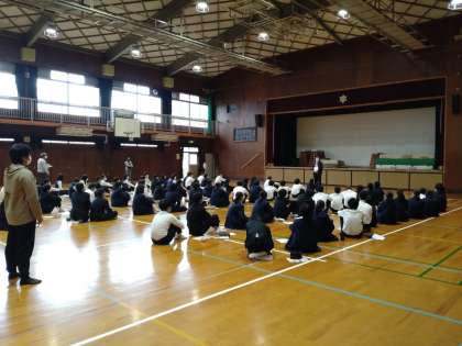 2年生は6時間目、体育館で校外学習に向けた取り組みを行いました。